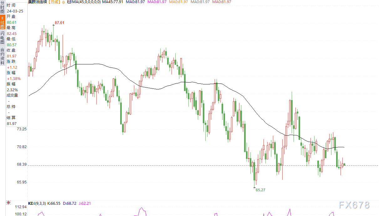 使得以美元计价的商品承压下行,目前美原油日线尚未跌破箱体支撑,等待周线收线之后的方向选择,