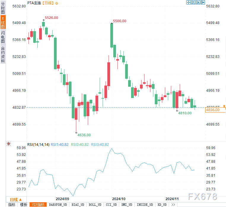PTA市场受制于供应增加和需求低迷,近期价格持续承压。11月15日,PTA主力合约小幅下跌0.58%,报4836元/吨。市场分析指出,尽管原油价格有所支撑,但下游聚酯行业需求未见明显回暖,PTA库存压力较大,供需矛盾难以缓解。