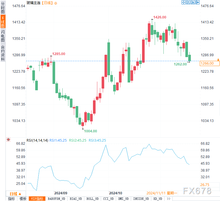 近期玻璃期货价格持续走低,主要受制于需求低迷和供应过剩的压力。11月15日,玻璃主力合约跌幅接近3%,报1280元/吨。分析指出,当前玻璃市场面临需求疲软的局面,加之库存高企,厂家出货压力加大,市场价格难以获得支撑。