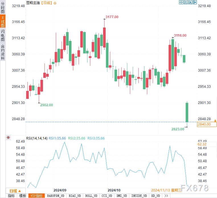 受南美大豆丰产预期影响,美豆市场下跌,豆粕期货市场也受到拖累。11月15日,豆粕01合约开盘后跌幅迅速扩大,日内跌幅接近3%。巴西和阿根廷天气状况良好,加之南美大豆播种进展顺利,国际市场对大豆供应充足的预期增强,这加剧了豆粕市场的下行压力。