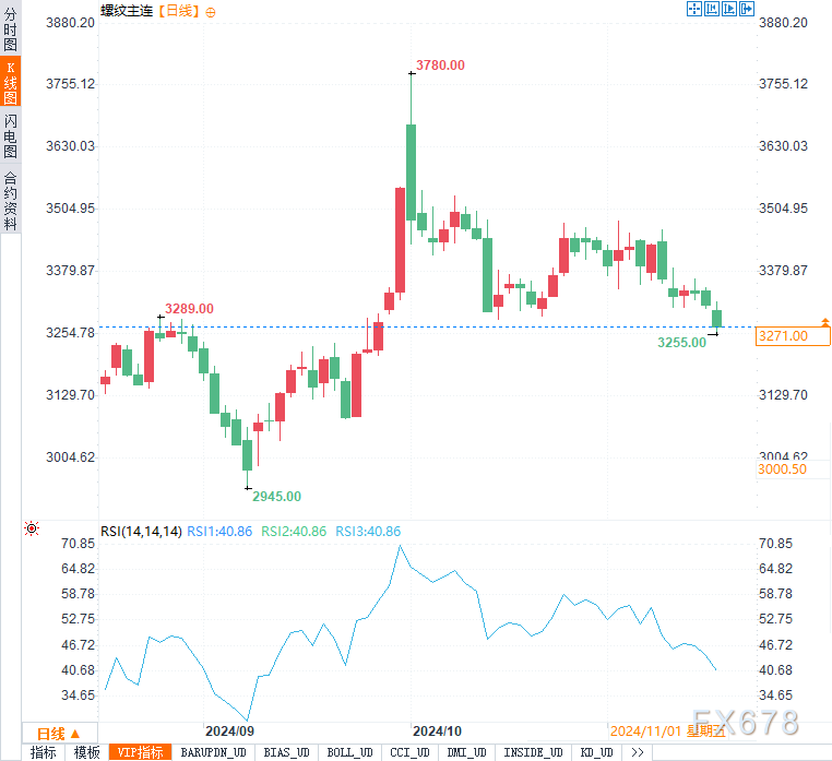 11月15日,螺纹钢期货市场表现低迷,主力合约在上周小幅上涨后遇阻。当前螺纹钢需求预期偏弱,尤其是北方进入采暖季,户外工程施工将减少,市场需求面临进一步收缩。近期有分析师指出,由于钢铁生产端的环保限产力度加大,供应面也有所减少,市场短期维持震荡为主。