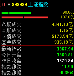 今日A股三大股指震荡下跌,截至上午收盘,沪指下跌0.35%,报3367.94点;深成指下跌0.85%,报10943.45点;创业板指下跌1.49%,报2300.09点;科创50指数下跌1.30%,报1013.95点;北证50指数下跌1.09%,报1339.74点。