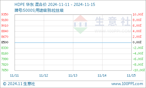 据生意社商品行情分析系统监测,HDPE(2426H)11月11日国内价格在8500元/吨,11月15日均价在8500元/吨,期间报价暂稳。