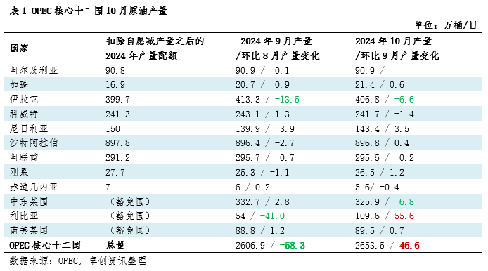 据OPEC月报显示,10月OPEC+产量环比上涨21.5万桶/日,其中,OPEC核心十二国整体产量环比上涨46.6万桶/日。