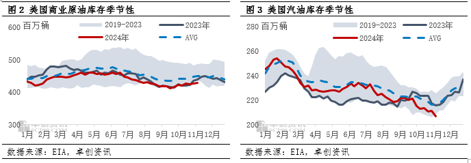 从本周内事件与价格走势来讲,周内并无重大事件发生,周初价格下跌主因或在于前期短线支撑油价反弹的利好因素消退后,油价回调,随后在跌落至前期支撑位后,震荡争夺。回顾前一周国际原油价格上涨,主要的利好因素在于四点,一是OPEC+方面选择再度延长减产协议至12月底;二是伊以表态存在升温预期;三是宏观方面美国选举靴子落定后市场前期的不确定性出清,宏观风险偏好上行;四是飓风“拉斐尔”扰动墨西哥湾海上油田生产。但从本周来看,市场对选举落定的宏观情绪基本消化完成,对特朗普政策回归中长期利空预期;伊以僵持,黎以停火协议推进,地缘风险降温;飓风过后墨西哥湾油企复工;同时,周内OPEC再度下调2024和2025年全球石油需求增长预期,虽然和IEA对于2024年需求增长预期的调整存在分歧,但整体表态来看均偏空。此外,美元指数持续走强,对以美元计价的原油价格产生压制。前期利好消散后,市场进行调整,缺乏清晰地信号指引背景下,短期市场观点存在分歧,日内油价波动较大。