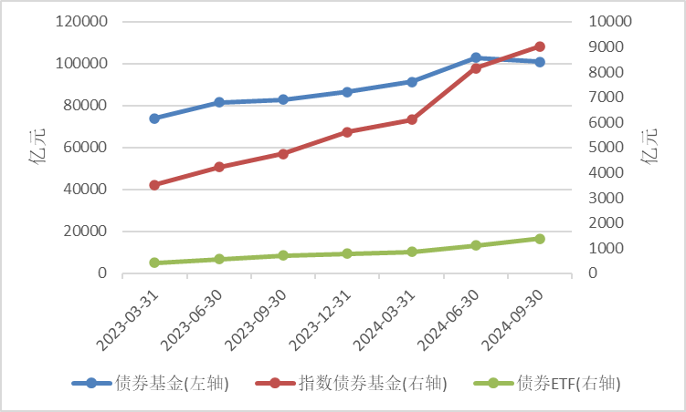 天相投顾基金评价中心人士表示,截至2024年三季度末,债券指数基金在债券基金中规模占比仅为9%左右,未来发展空间仍然非常广阔。一方面,固定收益资产逐渐成为资产配置中的重要组成部分,债券指数基金为投资者提供一种简单便捷配置工具;另一方面,我国债券市场规模庞大且不断扩容,为债券指数基金的发展提供了丰富的底层资产。