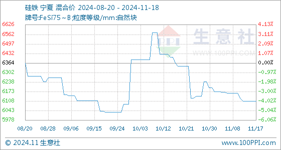 11月18日生意社硅铁基准价为6107.14元/吨