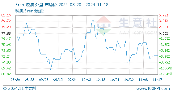11月18日生意社Brent原油基准价为72.56美元/桶