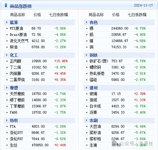 大宗商品数据每日题材(2024年11月18日)