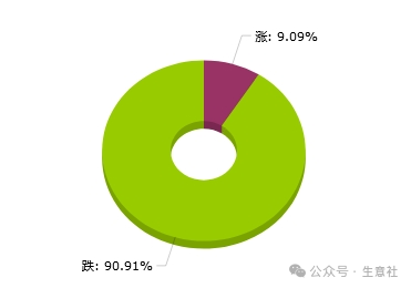 环比下降的商品共有10种,跌幅在5%以上的商品共2种,占该板块被监测商品数的18.2%;跌幅前3的产品分别为大豆油(-6.28%)、菜籽油(-6.06%)、菜籽粕(-4.64%)。