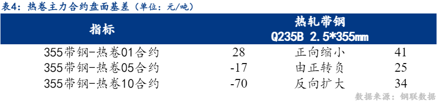18日市场热卷01合约与355带钢价差正向缩小41元/吨,热卷05合约与355带钢价差由正转负25元/吨。