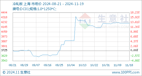 11月19日生意社冷轧板基准价为4217.50元/吨