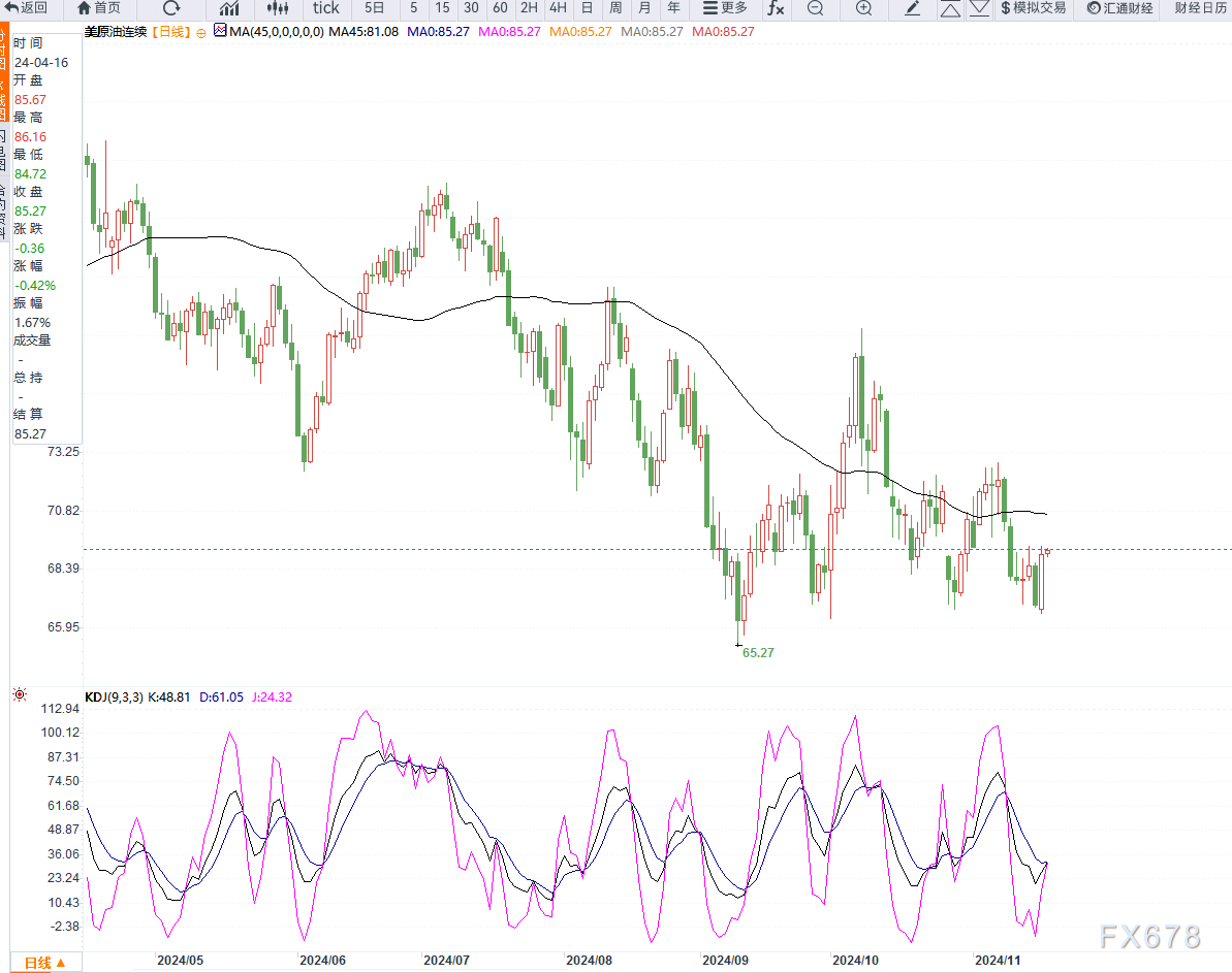 汇通财经APP讯——周二(11月19日)美原油亚盘时段延续昨日反弹周三,交投于69.13美元/桶附近,本轮反弹的主要原因是由于供应担忧的情绪推动了油价的反弹.