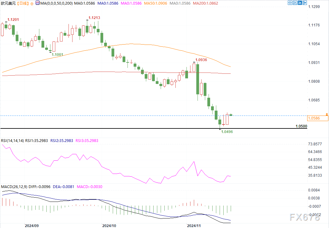基本面因素也可能推动欧元在短期内获得一定支撑。这一走势仍由特朗普当选总统后的市场预期大幅调整所主导。