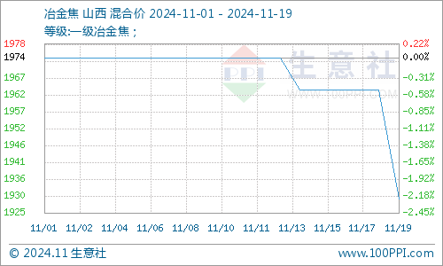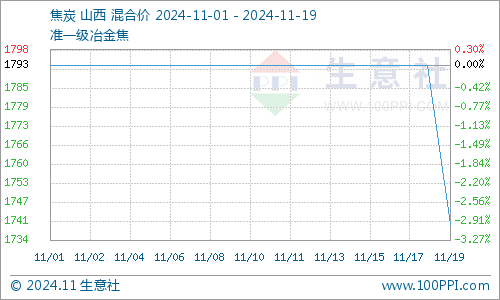 据生意社商品行情分析系统:2024年11月19日山西地区焦炭市场窄幅下行,均价是1793.33元/吨,山西地区冶金焦价格下行,均价是1964元/吨,19日国内焦炭企业弱势运行,供应端焦企开工率小幅下滑,企业积极走单,让利出货为主,库存少量累积,高位运行。
