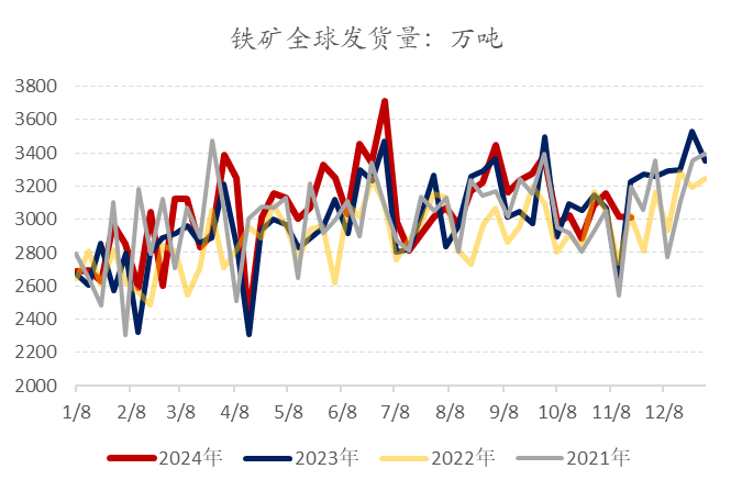 进入四季度以来,海外矿山发运量显著下降,铁矿供应边际显著收敛。从上海钢联调研数据来看:全球铁矿周度发运量从二三季度3200-3400万吨的高位水平,逐步降至当前2900-3100万吨偏低水平。随着铁矿发运量的下滑,铁矿供应增幅也随之而逐步收窄。