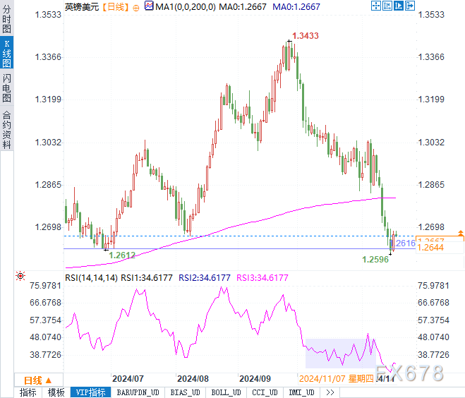 尽管英镑短期自低点反弹,但整体走势仍受美元强势的压制。特朗普再次当选总统后,美国经济政策的不确定性减少,同时10月零售销售数据好于预期,令市场对美联储12月降息的预期有所降温。目前,市场预期美联储在12月维持利率不变的可能性已升至58.4%。