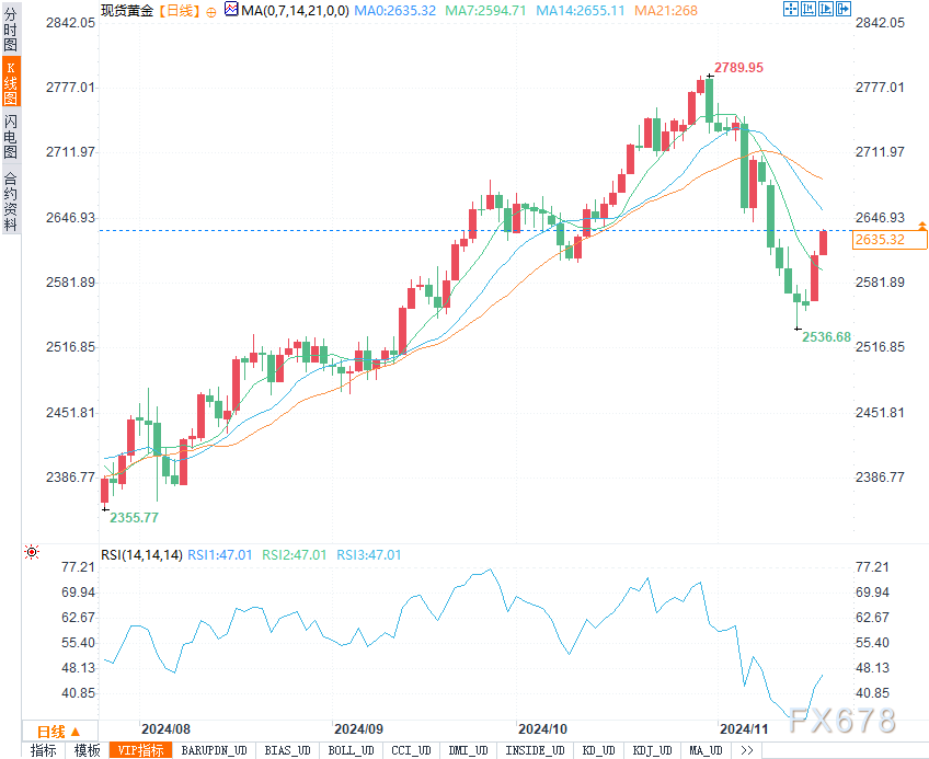 现货黄金连续两日上涨,受地缘政治风险驱动,避险情绪成为主要推力。尤其是美国总统批准乌克兰使用美制导弹深入俄罗斯,进一步升温俄乌冲突风险,为金价提供支撑。