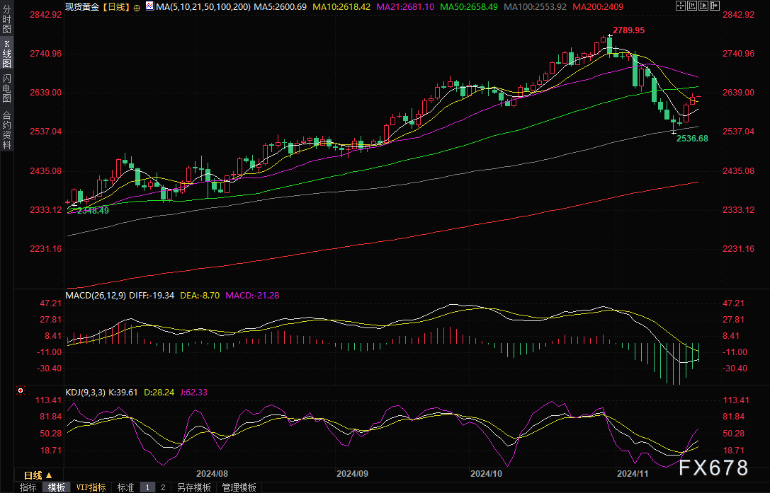 汇通财经APP讯——周三(11月20日)亚市早盘,现货黄金在2633美元附近震荡。金价周二上涨0.79%,为连续第二个交易日攀升,收报2632.08美元/盎司,盘中曾创下一周新高至2639.35美元/盎司,在美国政府日前对ATACMS导弹的使用开了绿灯后,乌克兰周二在俄乌战争的第1000天动用美国的ATACMS导弹袭击俄罗斯领土,引发了对避险资产的抢购,同时投资者在等待美联储利率计划的关键信号。