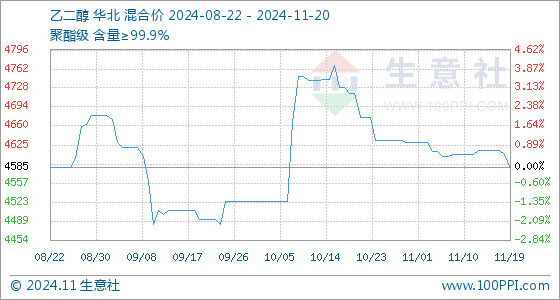 11月20日生意社乙二醇基准价为4583.33元/吨