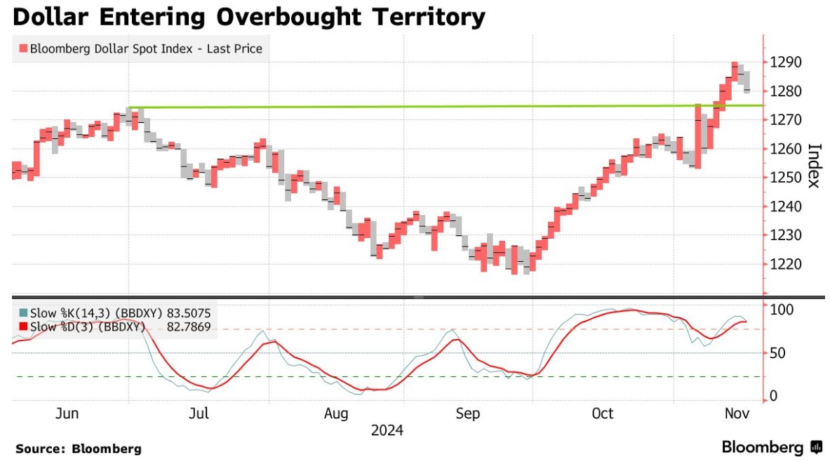 智通财经APP注意到,随着美国大选引发的看涨情绪逐渐消退,一些关键的市场指标开始表明,特朗普引发的美元上涨势头可能已经趋于平稳。
