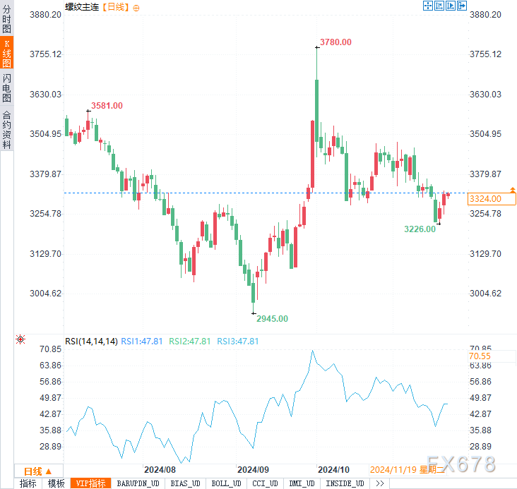 从交易层面看,当前螺纹钢市场受到利多消息带动,基本面压力较小。然而,由于政策力度的不确定性,上行空间受限。短期内,01合约支撑位可关注3200-3250元/吨,压力位则在3340-3360元/吨之间。