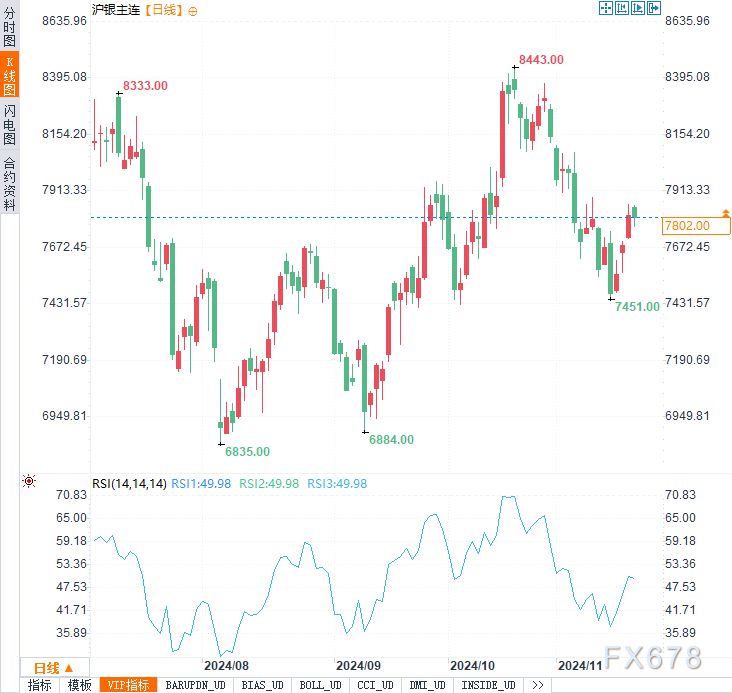 在贵金属市场上,沪银近期震荡偏强。随着“特朗普交易”效应逐步消化,美元指数与美债收益率持续回落,地缘政治风险与全球经济不确定性推高市场避险情绪。国际银价走势偏震荡,当前位于31美元/盎司附近,国内沪银则在7500元/吨至8000元/吨之间波动。