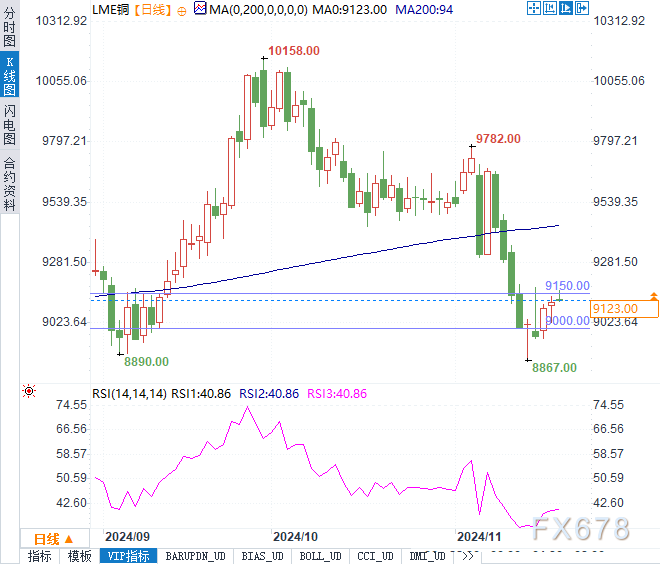 LME期铜的阻力区域位于9150-9200美元之间,若成功突破这一关口,价格可能进一步上探9300美元甚至更高区域。国内市场的关键阻力位在75000元人民币附近,突破后或吸引更多资金关注。