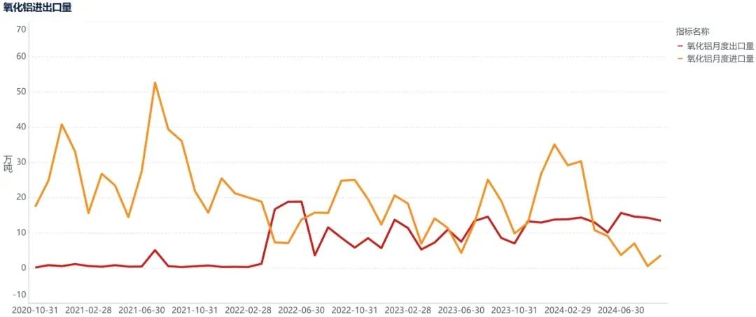 海外氧化铝价格亦居高难下,国内氧化铝维持净出口局面,10月份我国出口氧化铝17.02万吨,进口氧化铝0.63万吨,净出口16.39万吨,1-10月累计出口140.6万吨,累计进口130.5万吨,累计净出口10.1万吨。