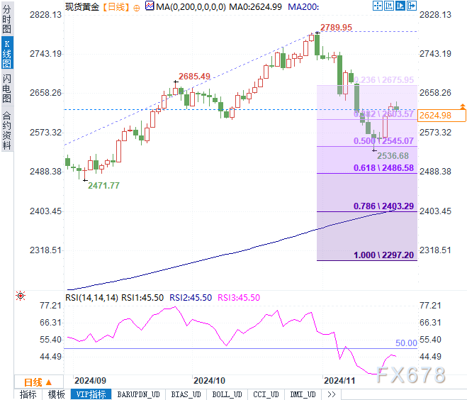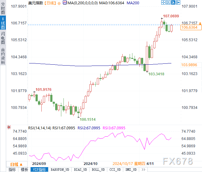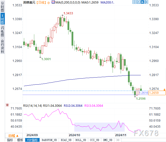 美元在连续三日下跌后展开反弹,重新夺回部分涨幅。日内美元指数上扬至106.67附近,显示出强劲的恢复力。推动这一反弹的原因在于避险情绪的减弱以及市场对美联储政策预期的调整。此前,俄乌冲突升级以及俄方修改核武政策一度提振避险情绪,但随着俄罗斯外长强调“将尽一切可能避免核战争”,市场的担忧有所降温。同时,美联储12月降息预期的下调也进一步巩固了美元的支撑。