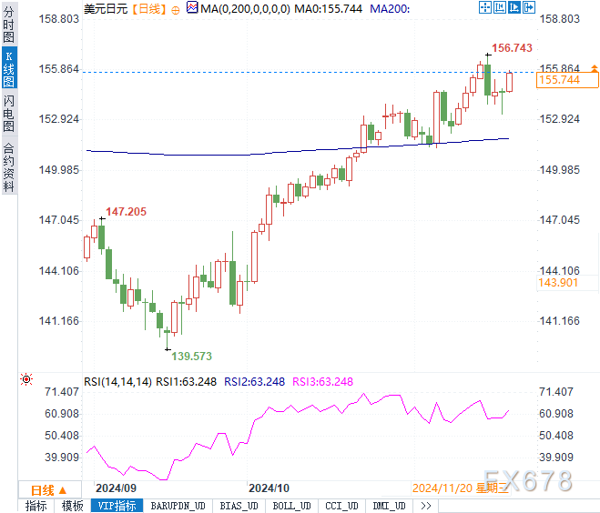 美元兑日元涨幅尤其显著,上扬0.75%,报155.810。这一水平已接近日本央行可能干预的敏感区间。尽管日本央行总裁植田和男近日未对日元贬值表态,但市场对日本财政部潜在的干预动作保持警惕。荷兰合作银行外汇策略主管Jane Foley指出:“美元兑日元接近155水平时,市场会高度紧张,尽管财务省可能暂时选择通过口头干预的方式来稳定市场情绪。”