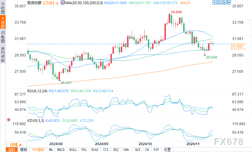 汇通财经APP讯——周三(11月20日)欧盘时段,白银价格从近期高点回落,因美元走强打压需求。地缘政治紧张局势和美联储利率预期仍是主要驱动因素,为白银价格创造了波动的背景。交易员正在密切关注技术水平和宏观经济指标,以寻找下一步走势的线索。