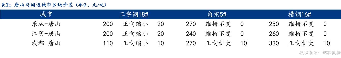 从区域价差来看,今日乐从江阴成都工字钢与唐山工字钢价差正向缩小;成都角钢槽钢与唐山角钢槽钢价差正向扩大。