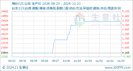 11月21日生意社棉纱32S基准价为24325.00元/吨