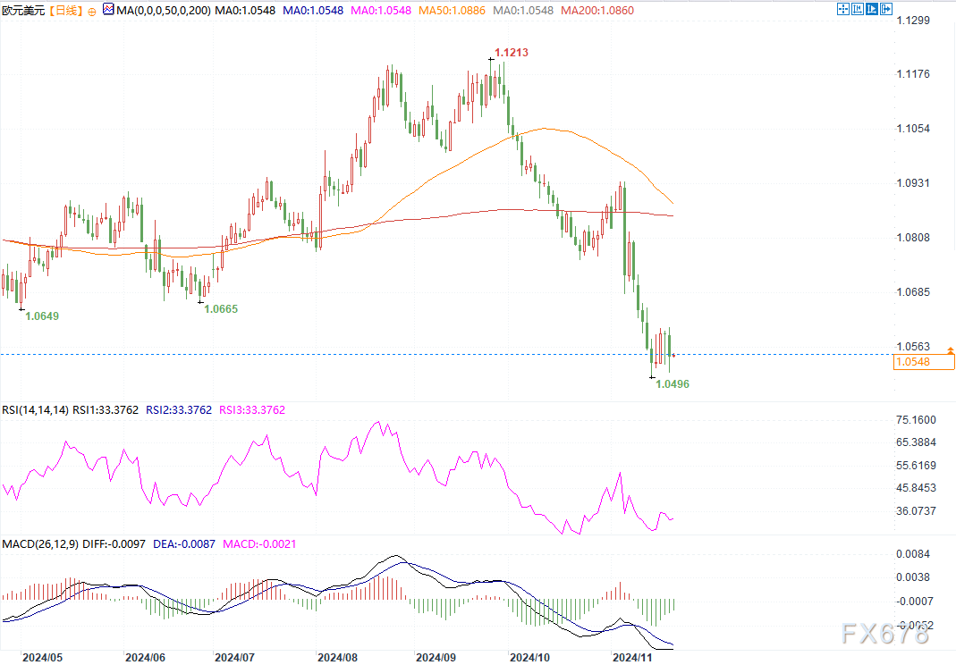 北京时间11月21日10:34,欧元兑美元报1.0547/48
