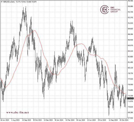 布伦特原油在73美元附近震荡,50日移动均线对反弹形成抑制。如果该阻力位不破,价格估计将返回70美元。