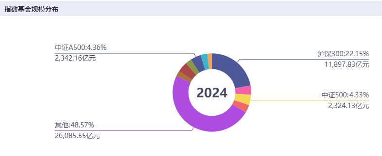 目前看来,沪深300仍是当之无愧的宽基巨头。据同花顺iFinD数据,截至11月21日,沪深300相关基金达到130余只,合计规模超万亿;与此同时,“新秀”中证A500也迎头赶上,截至11月21日,已有89只获批、62只已经成立,还有42只正在排队审批;中证A500指数的最新跟踪规模已超过2300亿元。