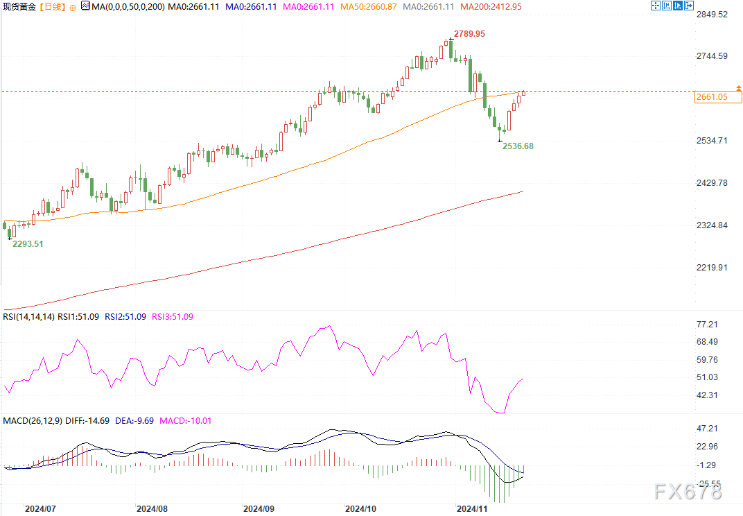 北京时间11月21日,现货黄金报2661.32美元/盎司