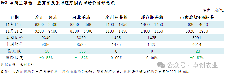 玉米油、胚芽粕预测:玉米油方面,目前阶段性高价情况下需求表现谨慎,且玉米胚芽价格预期下跌,需求及成本或利空其行情。玉米胚芽粕方面,随着豆粕价格下滑,市场新单有限,不过企业库存暂无明显压力,因此卓创资讯预计下周玉米胚芽粕价格或整体稳定。其中山东一级玉米油市场价格参考9280-9300元/吨,山东普通胚芽粕价格参考1425元/吨。
