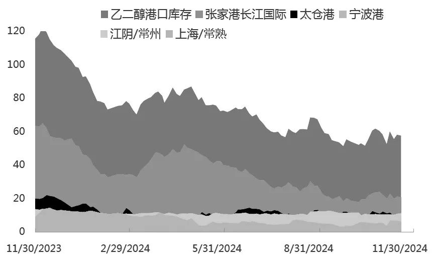 11月19日,汇丰发布研报称,预计OPEC+宣布将减产措施再延长3个月至2025年4月,而不是按照当前的计划从2025年1月1日开始增加产量,主要是为了避免在需求较弱的一季度出现原油供应过多的情况。此外,特朗普在美国大选中获胜后,美元指数飙升至近4个月高点,美元升值对美元标价的商品带来不利影响,其中受挫的就有原油。在弱需求与强美元的背景下,乙二醇成本端仍受原油弱势的拖累。