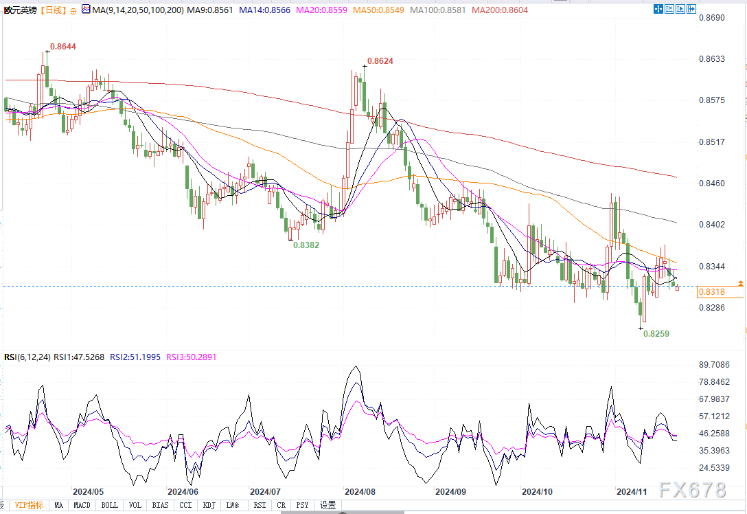北京时间11月22日9:17,欧元兑英镑报0.8313/20