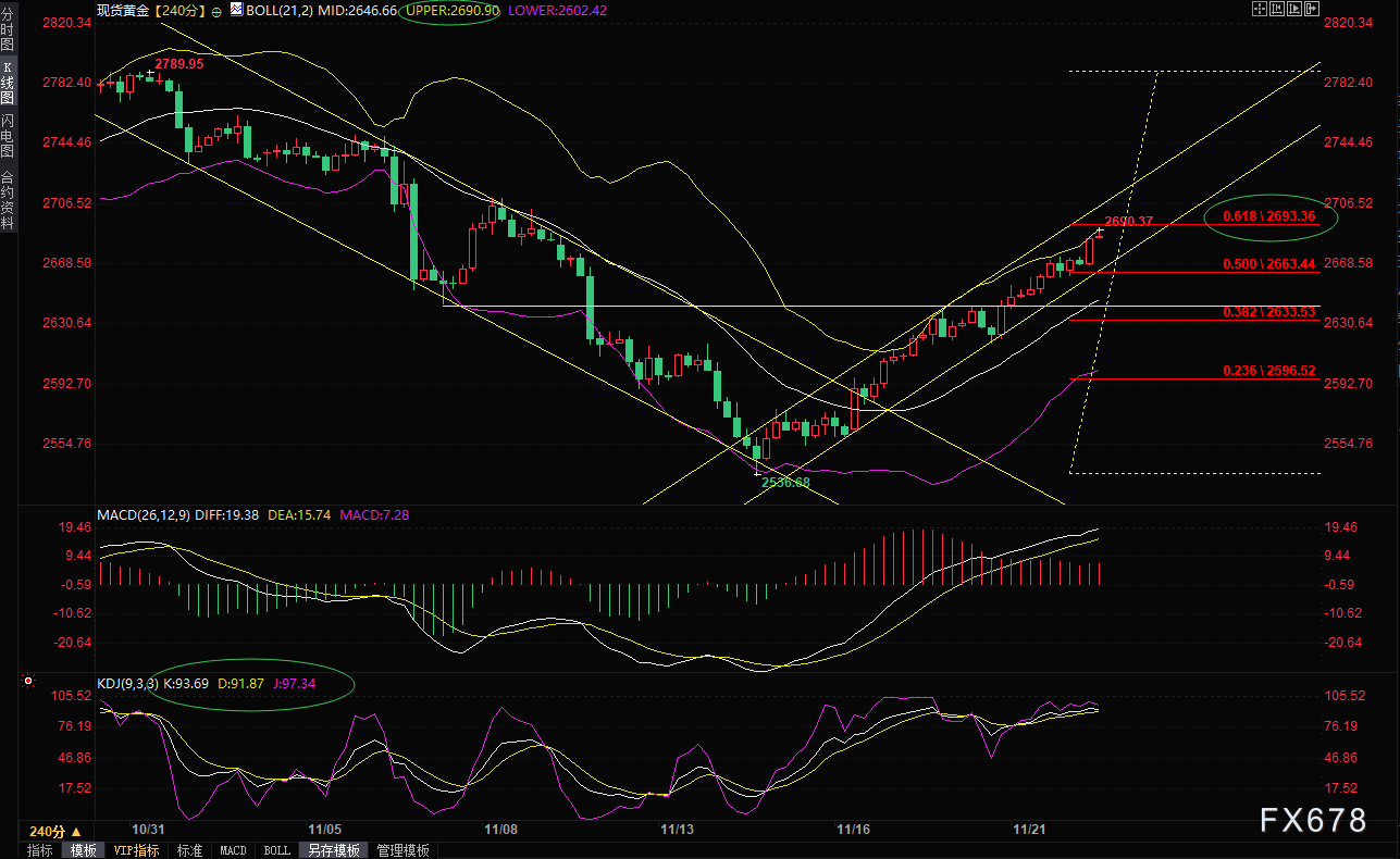 汇通财经APP讯——周五(11月22日)亚洲时段,现货黄金延续涨势,有望迎来日线五连阳,一度刷新近两周高点至2689.61美元/盎司,较周四收盘价上涨约20美元,对俄乌冲突加剧的担忧,进一步推升黄金的避险买需,盖过了美联储12月降息预期降温和美元走强的影响。