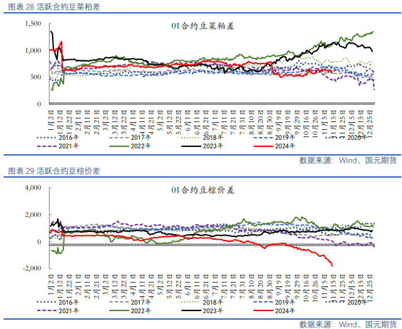 操作上,豆粕2501合约参考区间2800-3100,菜粕2501合约参考区间2250-2450。