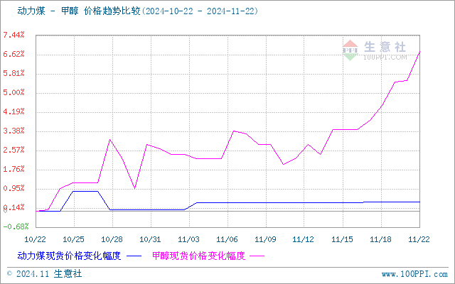 生意社煤炭/动力煤(上游原料)-甲醇价格走势比较图: