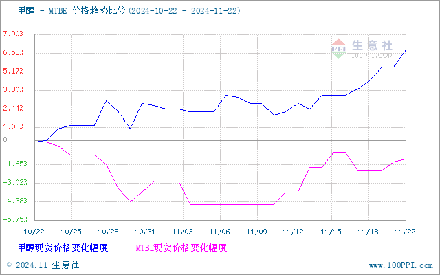 生意社甲醇-MTBE(下游产品)价格走势比较图:
