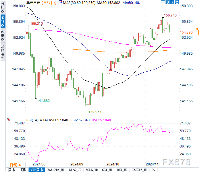 外汇市场本周呈现美元一枝独秀的格局,美元走强依旧是本月市场的核心主题,背后动力来自于美国经济的韧性以及美联储政策预期的调整。本周早些时候,美联储官员在公开发言中显露出分歧。尽管12月降息25个基点的市场概率目前不足60%,但部分政策制定者倾向于进一步宽松,这在一定程度上限制了美元的上涨空间。然而,由于当选总统特朗普的政策可能重新激发通胀压力,美元仍受到稳固支持。知名经济学家指出,“未来可能的财政刺激和放松监管将为美国经济增添动力,但这些措施也可能迫使美联储在降息路径上更加谨慎。”