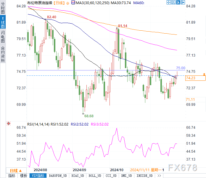 不过,欧元区疲弱的经济数据对油市构成了一定压力。最新的PMI数据显示,欧元区经济活动再次陷入收缩,制造业和服务业同步低迷。疲弱的数据加剧了市场对欧洲经济前景的担忧,也对全球能源需求的复苏形成拖累。尽管如此,高盛的分析师预计,布伦特原油价格将在70至85美元之间波动。如果美国新一届政府实施更严厉的制裁措施,价格可能触及区间上限。