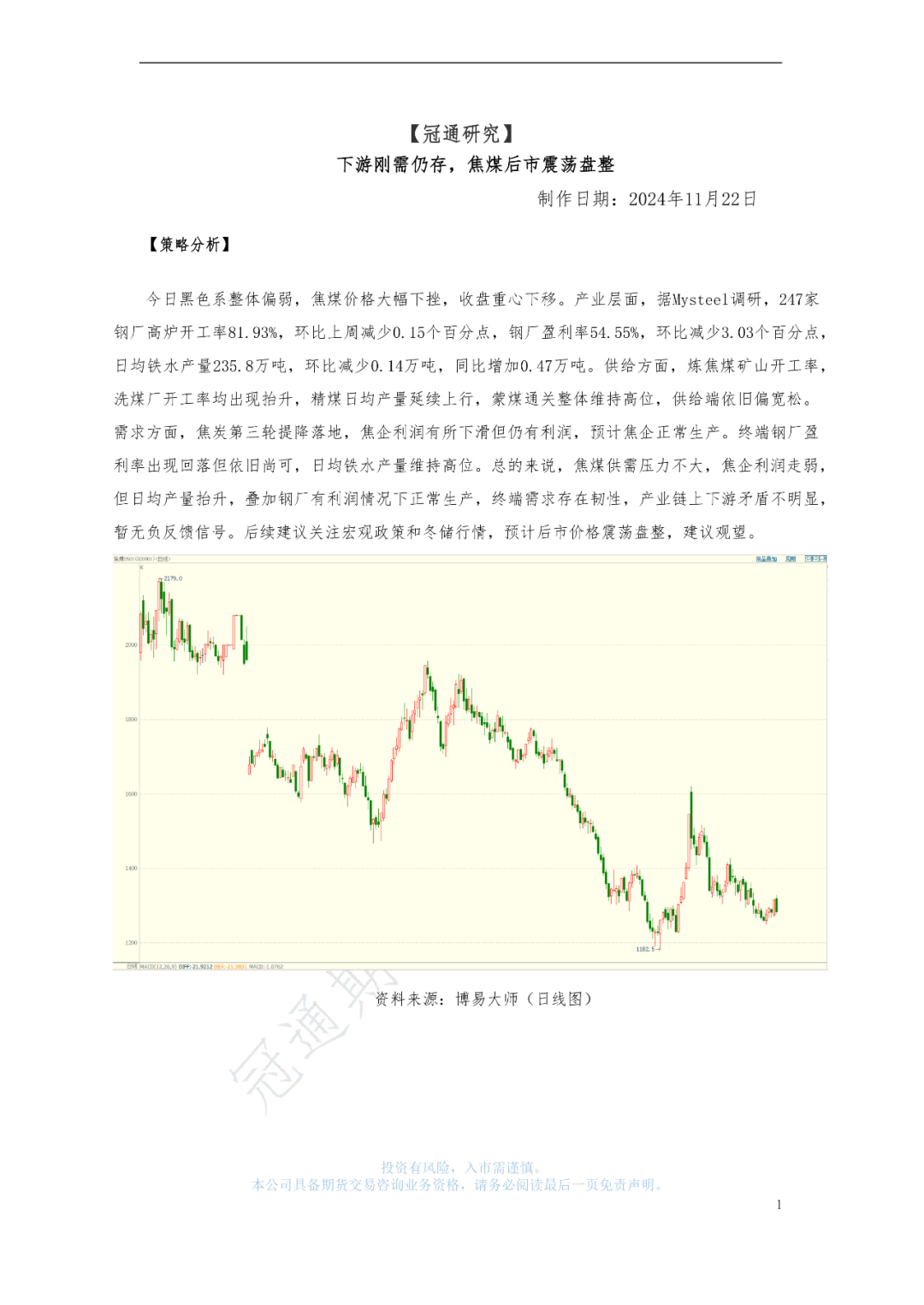冠通研究--焦煤策略:下游刚需仍存,焦煤后市震荡盘整