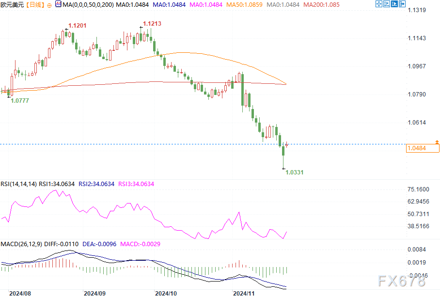 北京时间11月25日13:05,欧元兑美元报1.0477/78