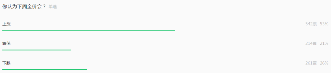 11月18日当周,伦敦金价格开盘2568.03美元/盎司,最高2715.66美元/盎司,最低2568.03美元/盎司,收盘2715.57美元/盎司。北京黄金经济发展研究中心调查显示,市场人士认为本周国际金价震荡可能性较大。投票显示,有53%的读者看涨本周金价、21%看震荡、26%看空。